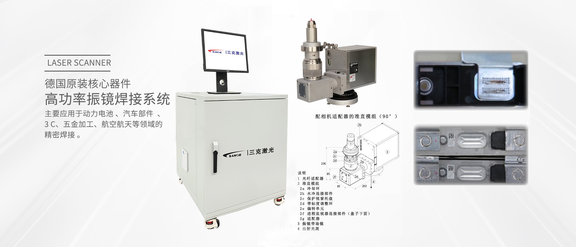 Company Profile上海三克激光科技有限公司成立于2005年,是激光智能智造行業(yè)的高新技術(shù)及上海市級(jí)專(zhuān)精特新企業(yè)。總部及研發(fā)中心位于國(guó)家級(jí)產(chǎn)業(yè)園G60科創(chuàng)走廊的起點(diǎn)——松江漕河涇科技綠洲,并在北京、深圳設(shè)有分支機(jī)構(gòu),主要產(chǎn)品包括:鋰電自動(dòng)化焊接系統(tǒng)、太陽(yáng)能光伏激光切割系統(tǒng)、高速激光清洗系統(tǒng)、精密激光微加工系統(tǒng)、激光打孔系統(tǒng)、激光打標(biāo)系統(tǒng)、激光劃片及非標(biāo)自動(dòng)化設(shè)備的定制。