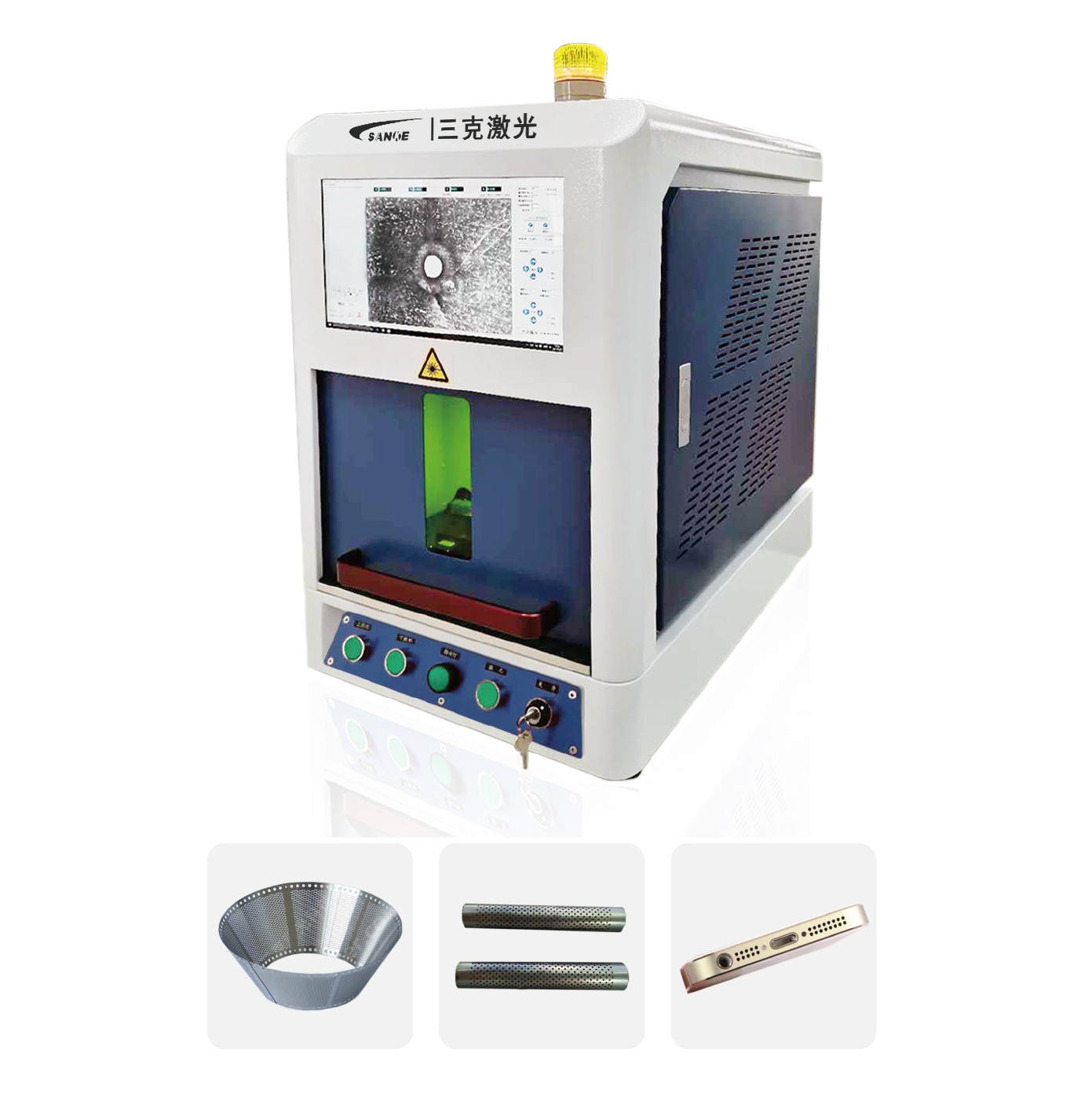 本機是針對實驗室壓力試驗課題專業(yè)定制的一款高精度激 光設備,具有兼容錸片加壓前后的各種打孔、切割的特點。